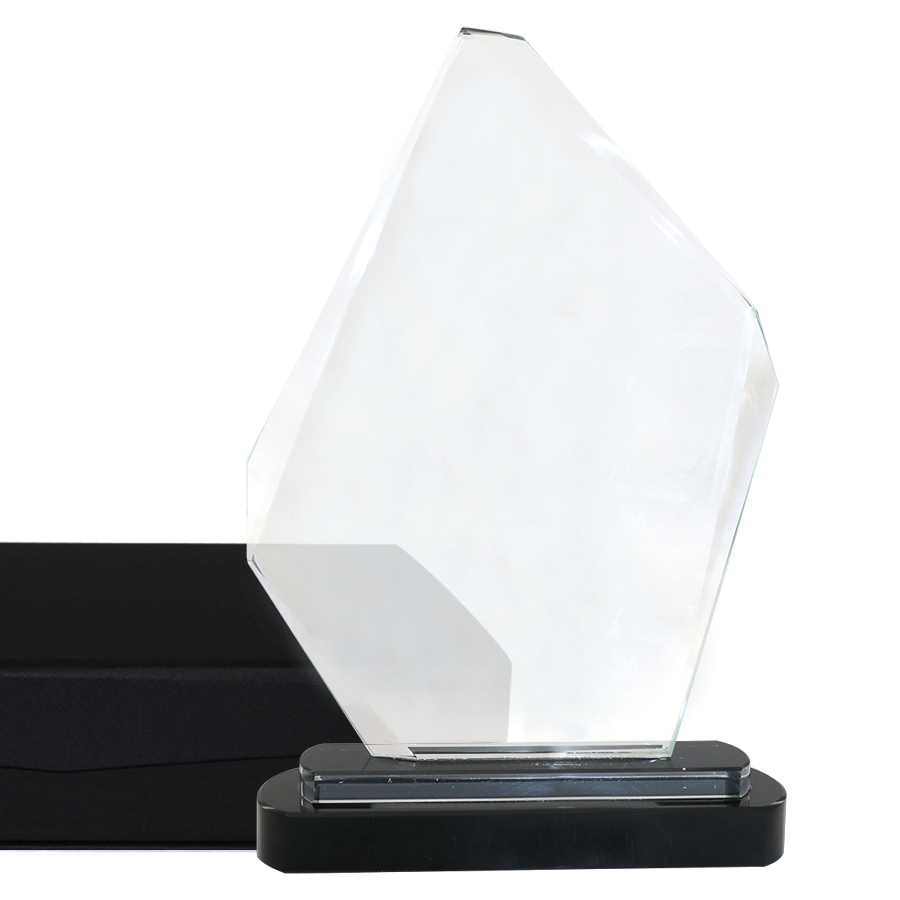 Double Socle en Verre Noir et Transparent Les Extremitees du Verre Sont Biseautees Coffret en Carton Noir Impression Recommandee : Marquage Laser – Impression Digitale